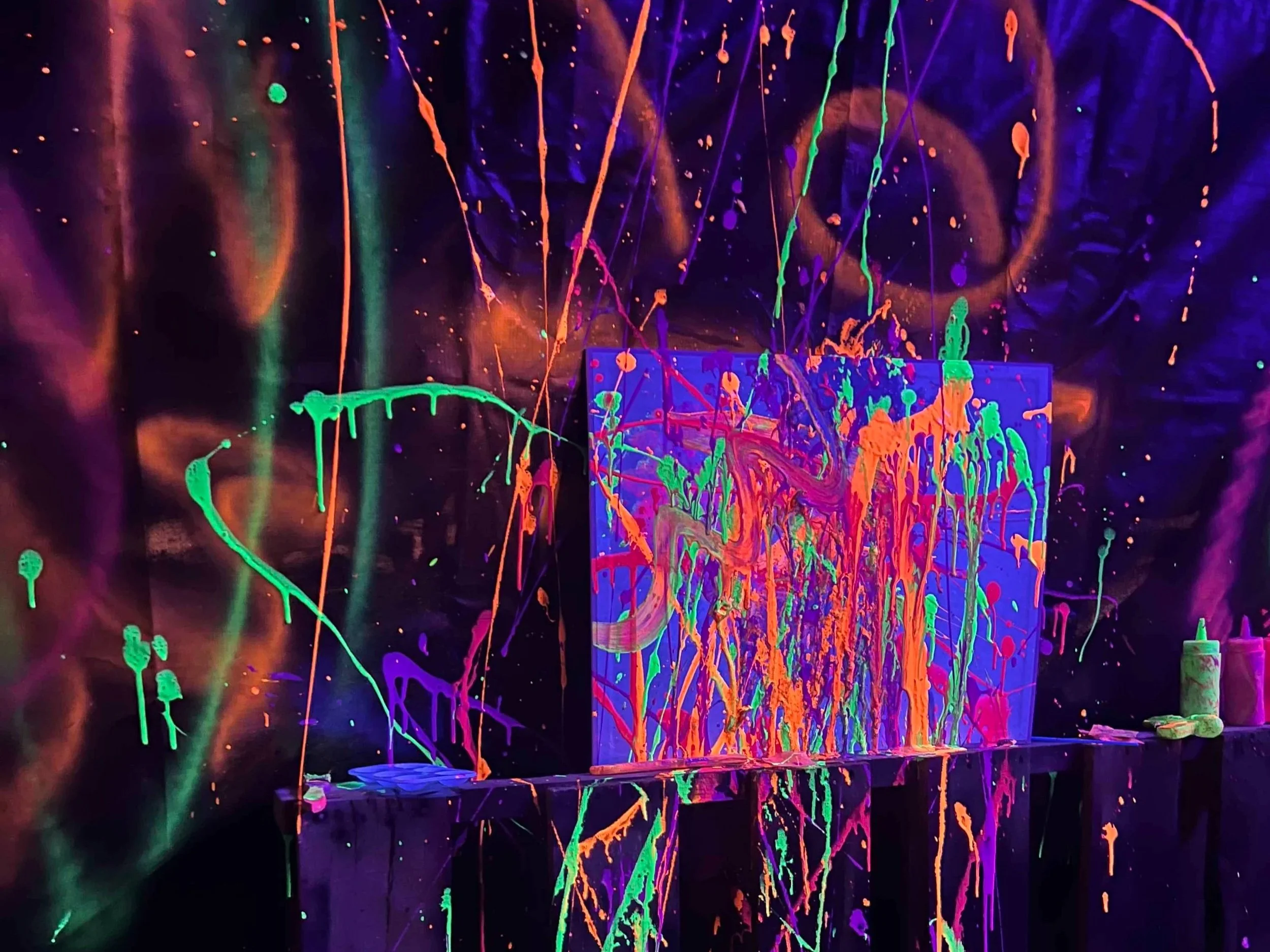 Light, comfortable clothing and flat tennis shoes. Remember, the messier the better so please wear clothes and shoes you don’t mind getting paint on, just in case. Safety googles and shoes must always be worn while creating your masterpiece.